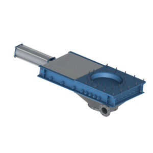 Válvulas de compuerta de descarga controla la descarga de material de depósitos de deshidratación. Su punto de operación es controlado por un actuador cilíndrico.